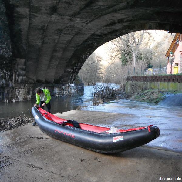 Bei einem Pegel von 86cm am Pegel Müsch (min. 60) beginnt die Fahrt hinter der Brücke an der Pizzeria. Zum Be- und Entladen kann unter die Brücke gefahren werden. Parken sollte man an der Hauptstraße.