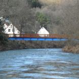 Wenn man den Ortseingang von Dümpelfeld erreicht überspannt eine kleine Fußgängerbrücke die Ahr und verbindet Dümpelfeld rechts mit dem Sportplatz links.