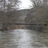 Ein Stück weiter auf höhe einer verfallene Brücke liegt ein dicker Baum komplett über dem Flussbett. Wir empfehlen hier das linke Ufer anzusteuern und das Hindernis zu Umtragen. Schmale Boote können bei ausreichend Wasser zwischen Wurzelballen und Ufer hindurch rutschen.