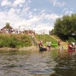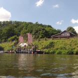 Nach ruhigen 11,1 km fahrt erreicht man Runkel. An der Slipanlage (re) ist ein guter Ein- und Ausstieg. Oberhalb befinden sich der Bahnhof und das Restaurant "Zum Güterschuppen". Hier kann man eine Kleinigkeit essen und trinken und auf den Zug für die Rückfahrt warten.