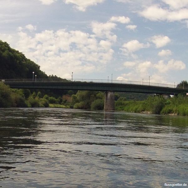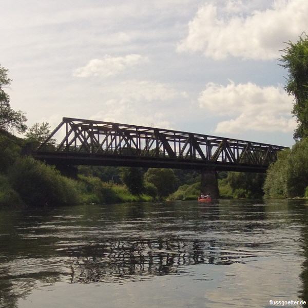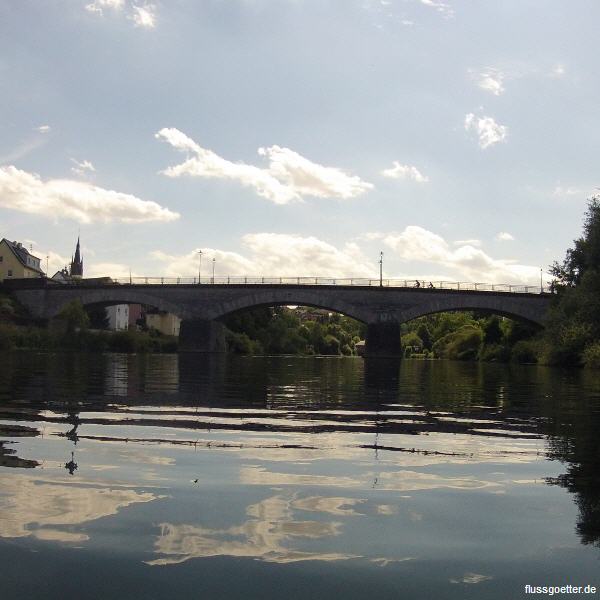 Nach 400m erreicht man die erste Brücke auf diesem Abschnitt. Die Brückenstraße überquert die Lahn. Über diese gelangt man nach ca. 300m auch zum nächstgelegenen Bahnhof (li).