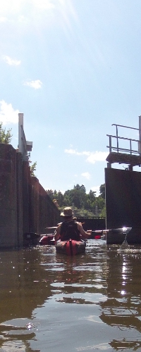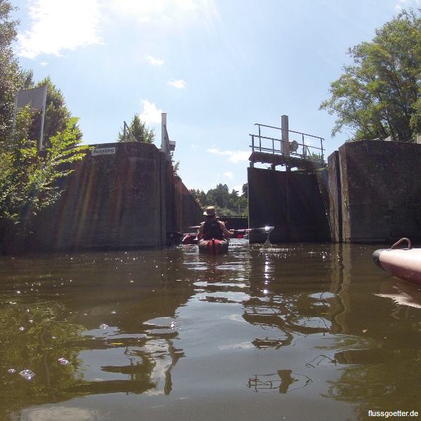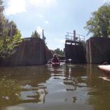 Nun erreicht man die Selbstbedienungsschleuse. Vor dem Schleusentor kann man anlegen und die Schleuse über die Insel umtragen.