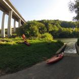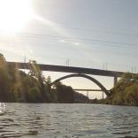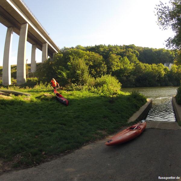 Die 2. über 50 m hohe Brücke der A3 signalisiert das Ende unserer Tour. Gleich hinter der Brücke, kann rechts auf der Wiese geparkt und an der Slipanlage die Fahrt beendet werden.