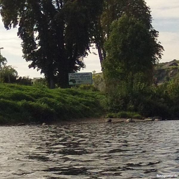 Bei Km 66 erreicht man auf der linken Seite eine offizielle Ein- Ausstiegstelle am Campingplatz. Ab hier beginnt das NSG „Runkeler Laach“ und damit verbunden, ein Uferbetretungsverbot für die linke Seite.