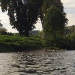 Laut Google mündet bei km 73,8 der Emsbach auf der linken Seite in die Lahn. Diesen müssen wir allerdings übersehen haben und somit ist kein Foto vorhanden. Laut DKV ist der Emsbach nur bei Hochwasser und nur für geübte Paddler in Einerbooten fahrbar.
