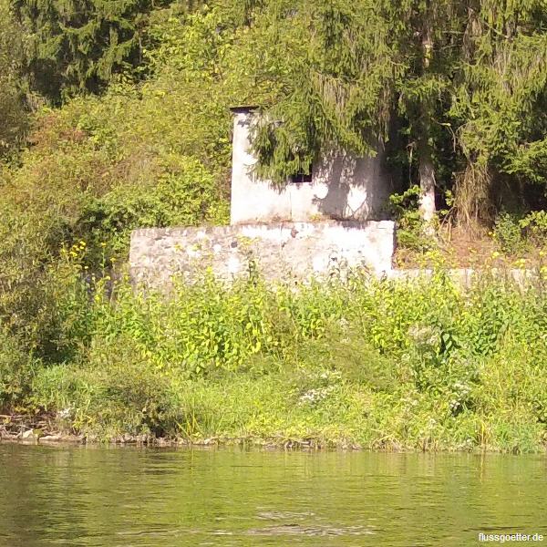 Für den Paddler eher Nebensache, steht bei Km 70 am rechten Ufer ein kleines Gebäude. Der Ein oder Andere wird sich vielleicht dennoch fragen, was das wohl ist. Es handelt sich hierbei um ein ehemaliges Pumphaus, welches das alte Kalkwerk mit Wasser zum Ablöschen des Kalkes belieferte.