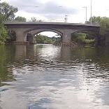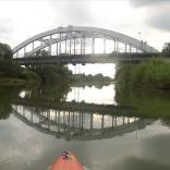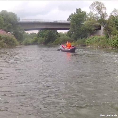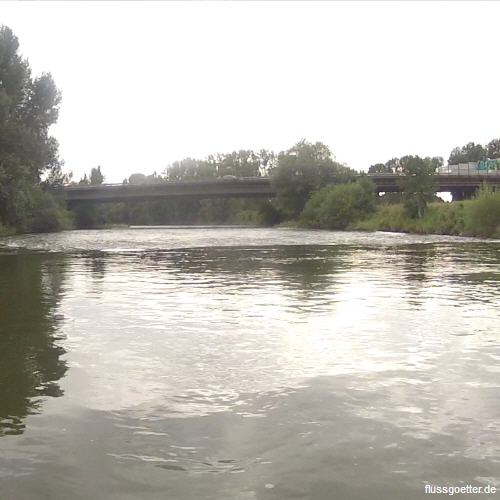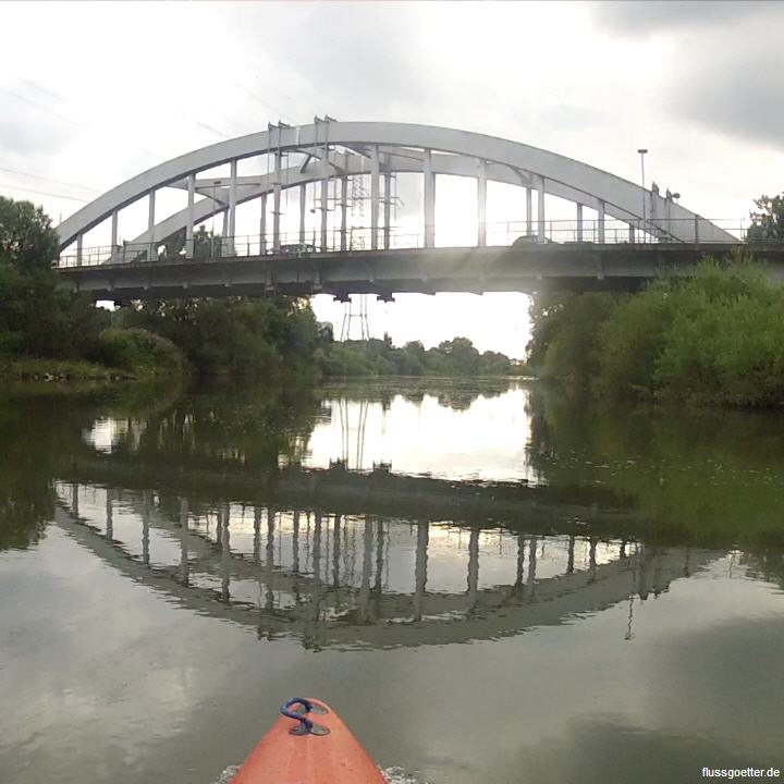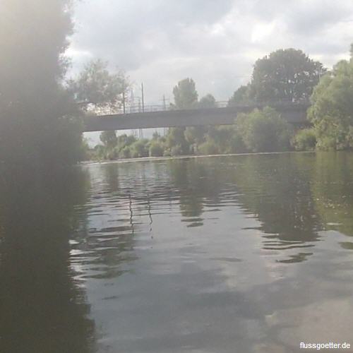 Bereits nach wenigen Metern unterquert man die Doppelbrücke der Frankfurter Str. und einer Eisenbahnbrücke mit einem kleinem Schwall. Die Brücken fährt man am besten in der Mitte.