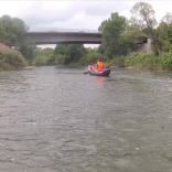 Ein weiterer Schwall der auch für ungeübte Kanuten kein Problem darstellen sollte, taucht vor der Brücke der A59 auf.