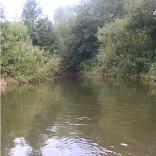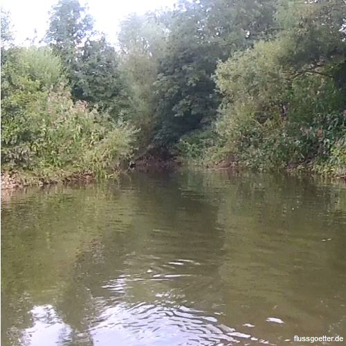 Hinter einer Rechtsbiegung trifft man am rechten Ufer auf die Mündung des Mühlenbachs.