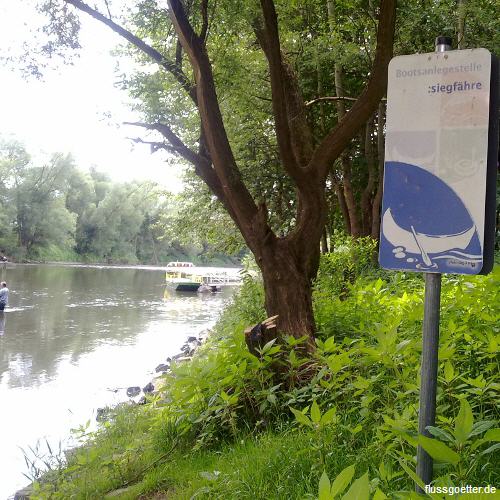 die man kurz nach dem rechts mündenden Altarm (Befahrungsverbot) der Sieg passiert.