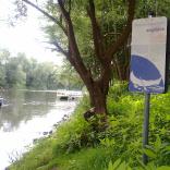 Von links passiert man einen renaturierten Seitenarm der Sieg der nicht befahren werden darf.