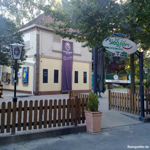 Direkt hinter der Brücke bringt die älteste und einzige „Einmannfähre“ Deutschlands, Wanderer und Radfahrer über die Sieg und wer am Ende seiner Paddeltour ein kühles Getränk oder einen kleinen Imbiss zu sich nehmen möchte ist im Biergarten "Zur Siegfähre" herzlich willkommen.