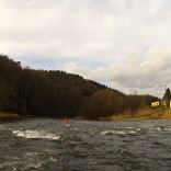Auf den nächsten 3 km passiert man immer wieder kleinere Schwallstücke die auch dem ungeübten Paddler keine Probleme bereiten dürften. Zum Beispiel hier bei